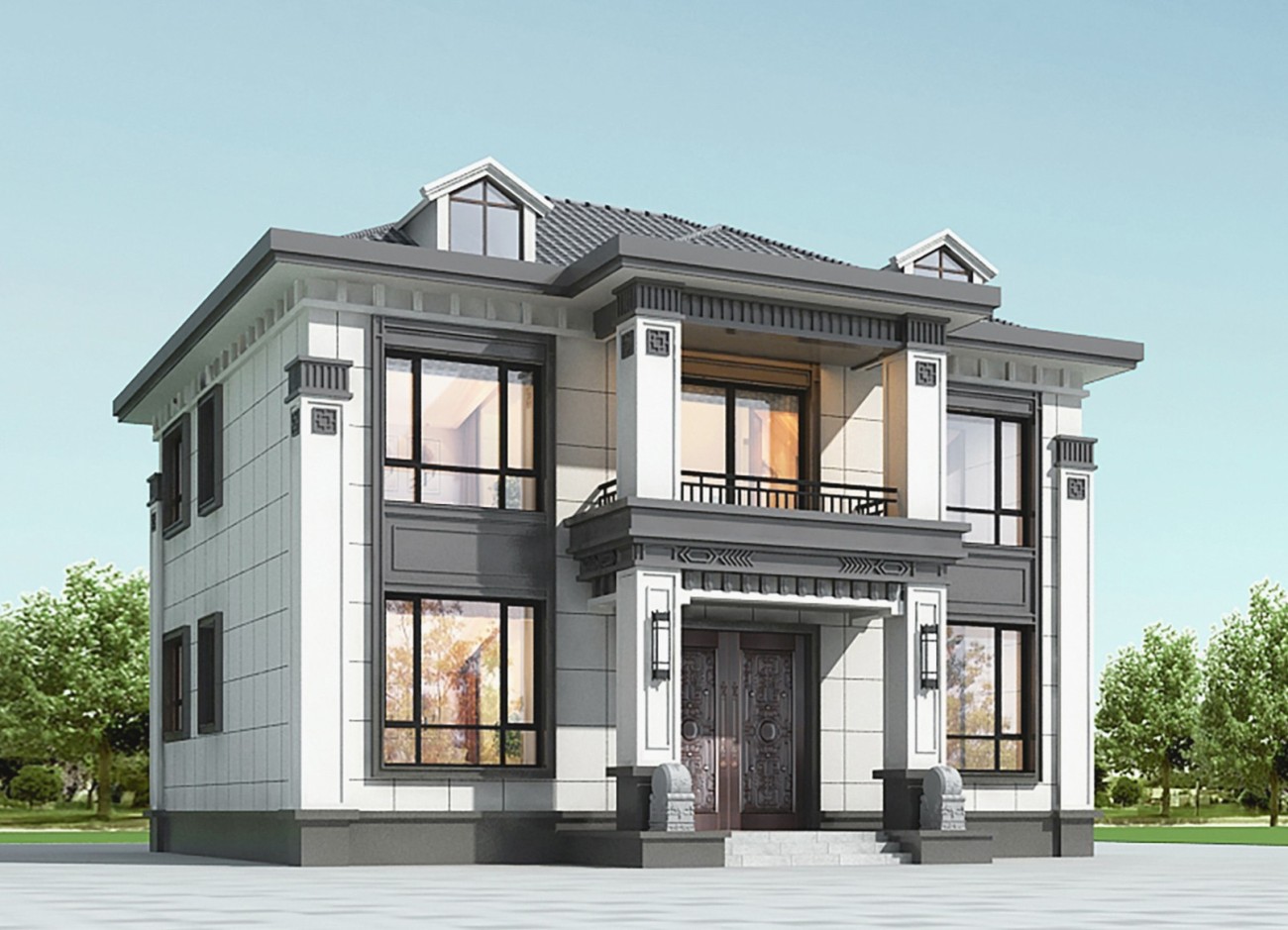文山005 两层新中式(11.36x11.76米)-【易设计】