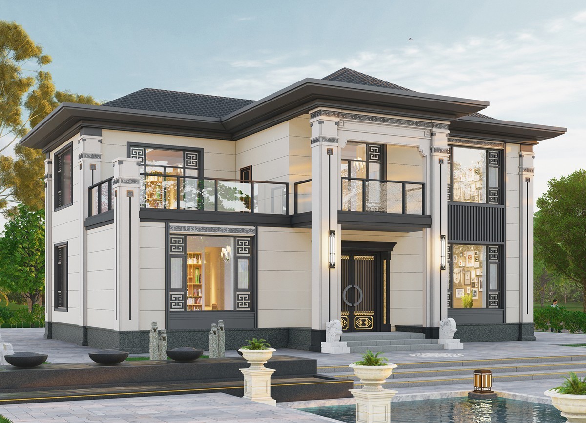文山009 两层新中式(11.45x14.76米)-【易设计】