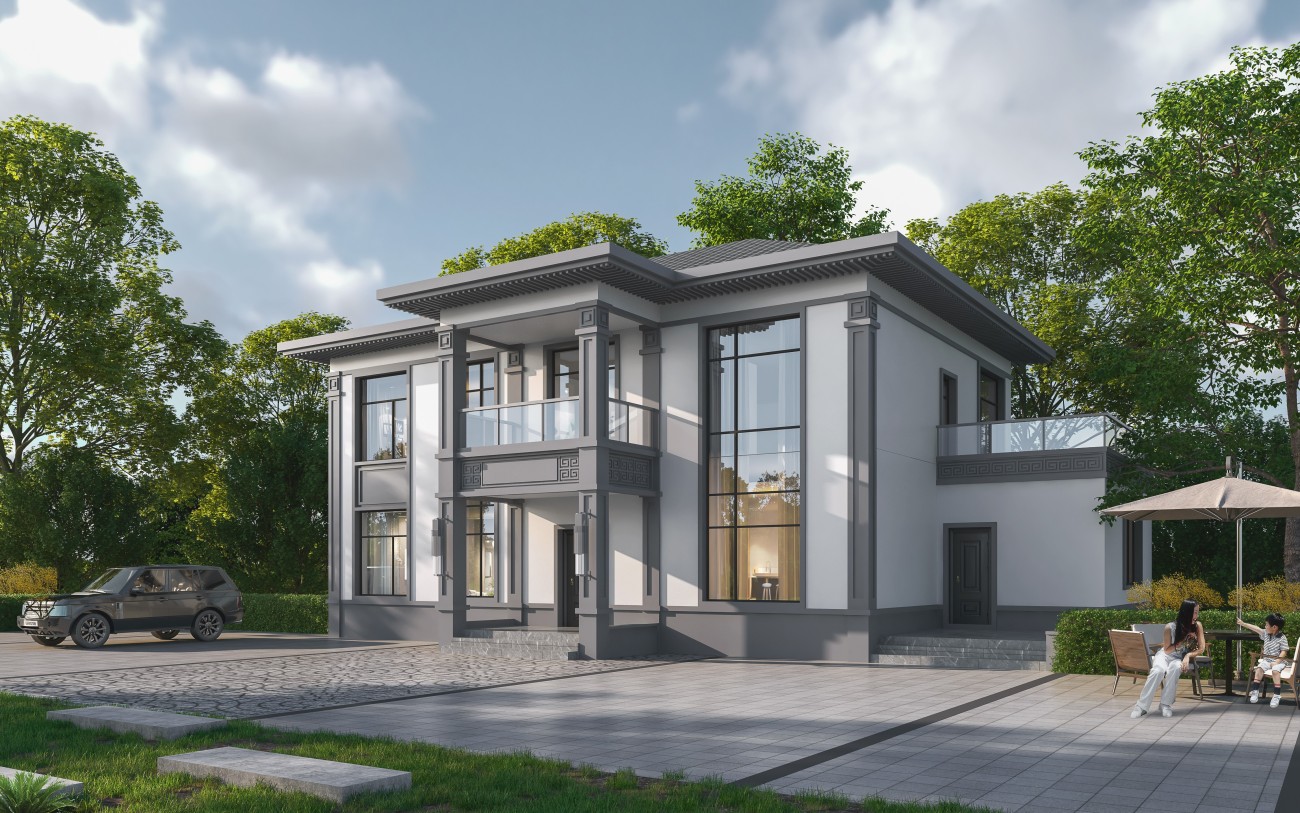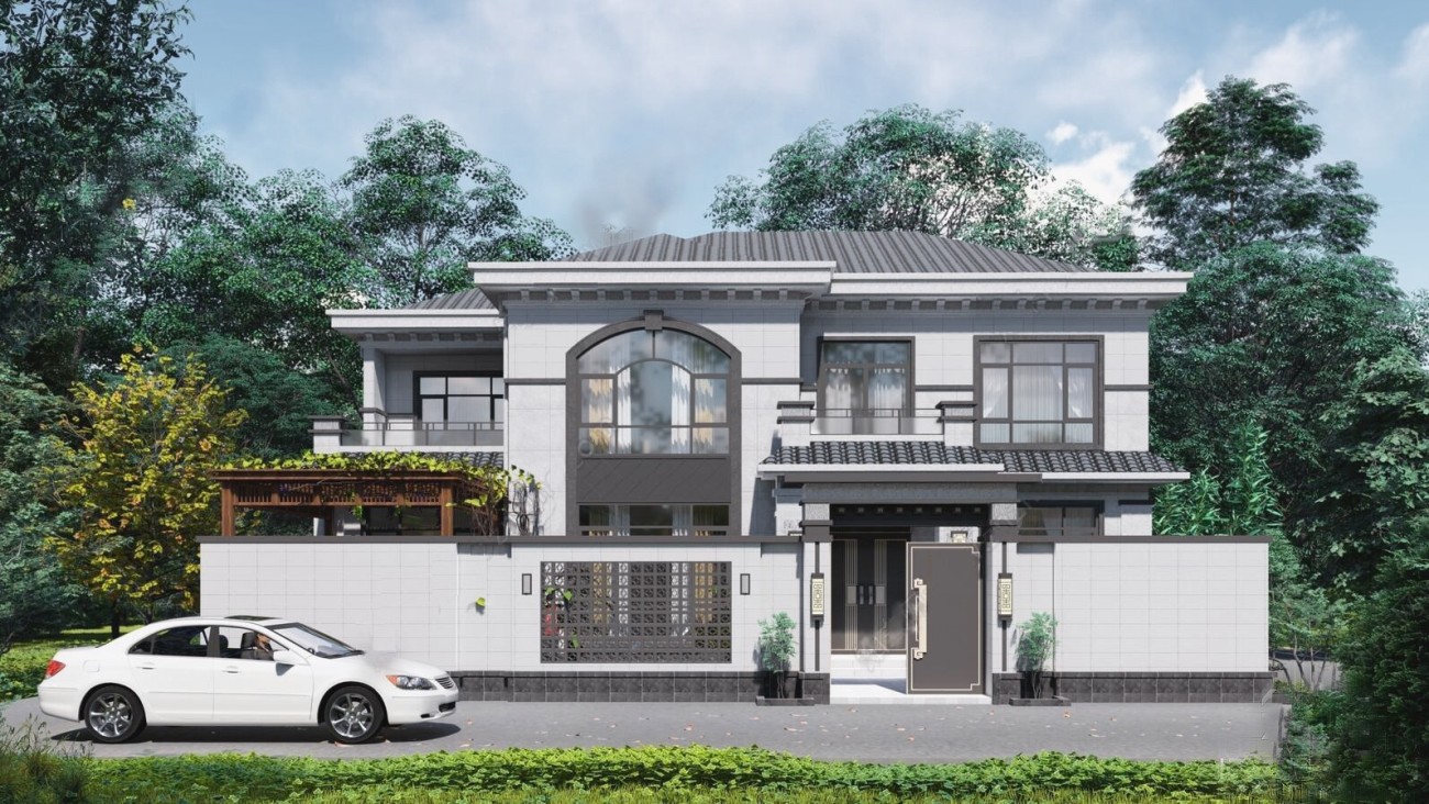 文山011 两层新中式(15.43x12.66米)-【易设计】